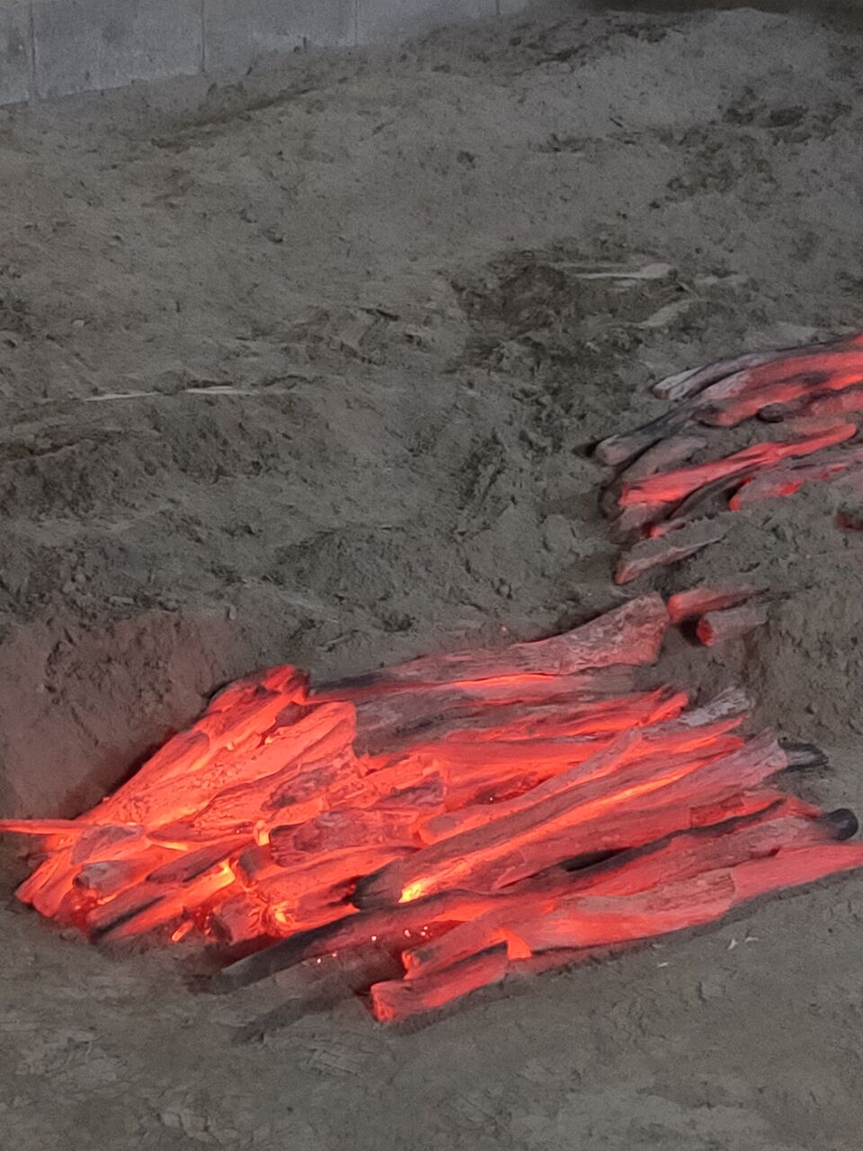作業場に入った際、真っ先に目に入ったのが窯の中で燃える炭でした。